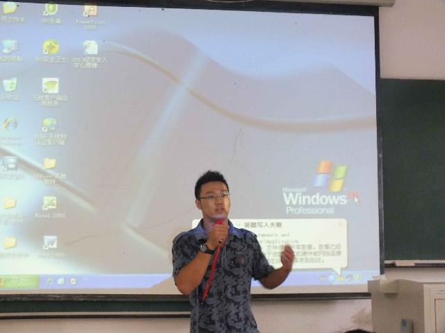 本科生辅导员刘洋、助理辅导员吴兴识应邀出席活动。会上,吴兴识首先对同学们的到来表示欢迎,然后从一名本科毕业生的角度对大一新生在课余时间规划、专业科学习方面提出诸多建议。刘洋老师则向新生传达了学前教育活动、选课和军训的时间安排,并就新生日常活动的作息、考勤和寝室日常规范等方面提出了纪律上的要求。随后全体13级新生踊跃登台亮相,进行自我展示。为了在简短的时间内给老师和同学留下最深刻的印象,每一名新生都用自己独特的方式进行自我介绍。他们或着重介绍自己家乡的旖旎风光、风土人情,或突出展现个人的性格特点、兴趣爱好,或以演讲或歌舞的形式展示个人风采。虽然方式迥异,但同学们都在展示自我的同时表达了自己积极向上的生活态度以及对未来大学生活的美好向往。台上同学的出色表现不时赢得台下听众的阵阵掌声,不仅给新同学留下了不错的印象,同时也为自己美好的大学生活奠定了基础。
